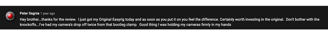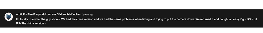 While exploring camera support solutions, many people will inevitably come across cheap knock-offs. It may be tempting to justify saving a few hundred dollars for a copycat product that advertises itself "as good as the real thing".