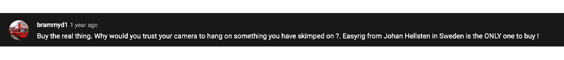 Then there are a few things that are good to know before you make your purchase. Over the years we have seen all manner of fake Easyrigs, and although Easyrig is a patented and trademarked brand, many still make their way onto the market from China and India.