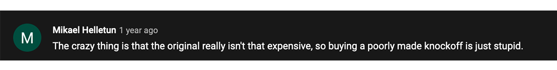 As user Greg Latham explains in his video below, these fakes often come with a different type of cost.
